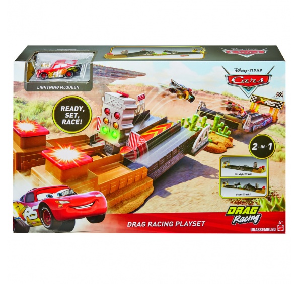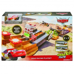 Užij si spoustu strhující zábavy, kterou znáš z oblíbených filmů Auta! V tomto herním setu na tebe čekají superrychlé dragstery a parádní vychytávky. Postav je na startovní čáru a zjisti, které z těchto vozidel je to nejrychlejší. Na dráze tě čekají parádní kaskadérské kousky, jako například jízda přes most nebo skok přes kaktus a mnoho dalšího. Součástí herního setu je i Blesk McQueen, aby zábava mohla ihned začít.