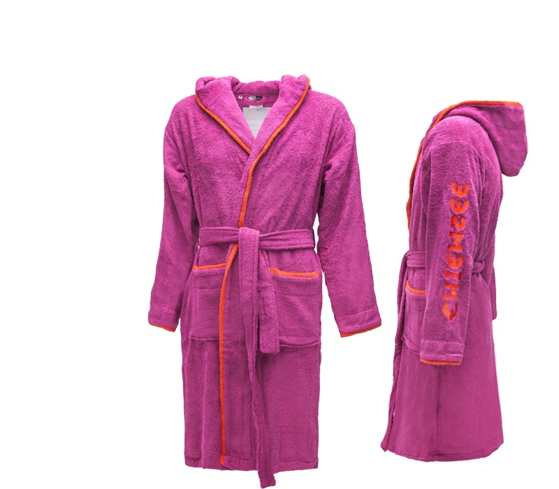 Na rukávu je nápis Chiemsee, v pase je pásek na zavazování a po stranách županu jsou dvě kapsy.