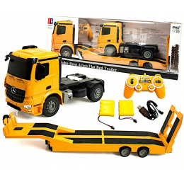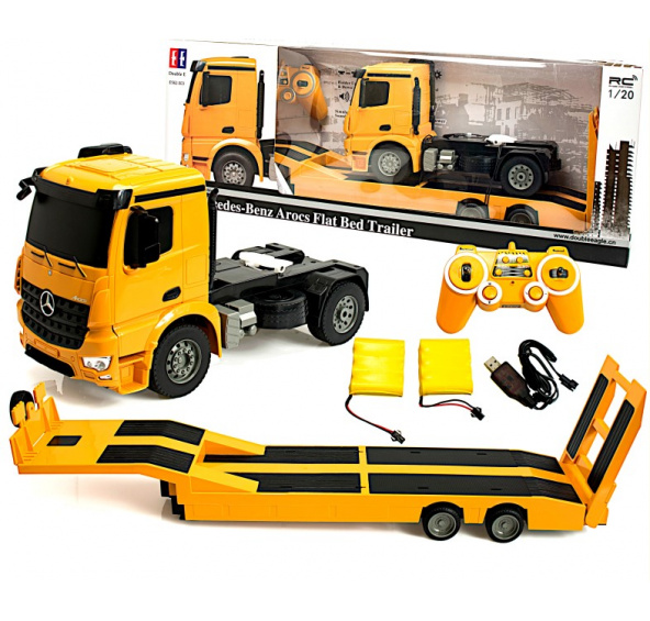 Originální podvalník AROCS se může pyšnit perfektními detaily v realistickém provedení. Tento pomocník na každou stavbu pro převoz těžké techniky, je určen pro vnitřní i venkovní použití. Model je osazen efektním LED osvětlením včetně světel zpátečky, a zvukovým modulem s realistickým projevem. Vysílačem lze ovládat jízdu, zatáčení a sklápění a vyklápění nájezdů. Toto do detailu zpracované potěší jakékoliv malé truckery. Od této chvíle bude každá jízda realistický zážitek.