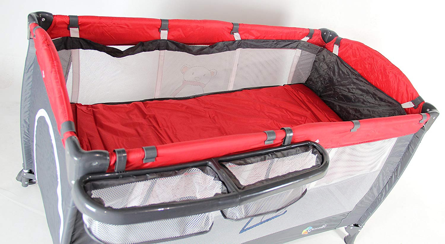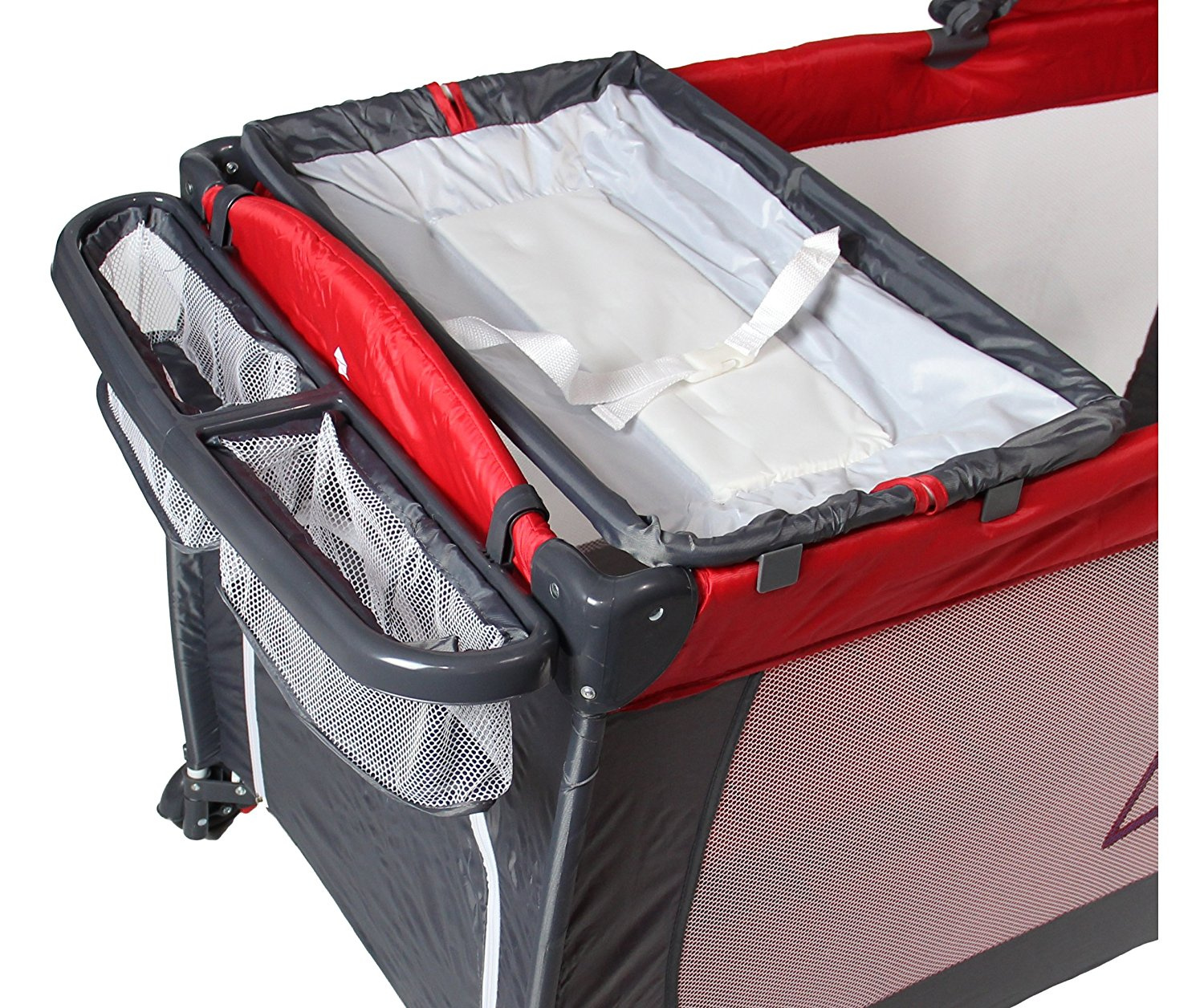 Přebalovací podložka se připevnuje napříč přes cestovní postýlku.
