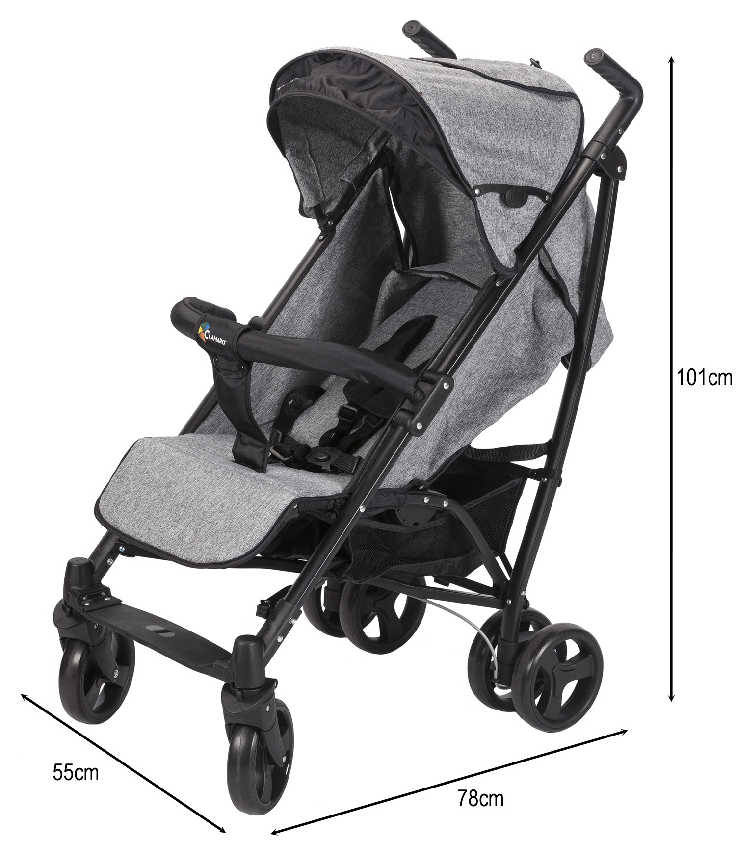Clamaro kočárek je lehký kompaktní kočárek s moderním designem, který poskytuje pohodlí a snadné manévrování.
