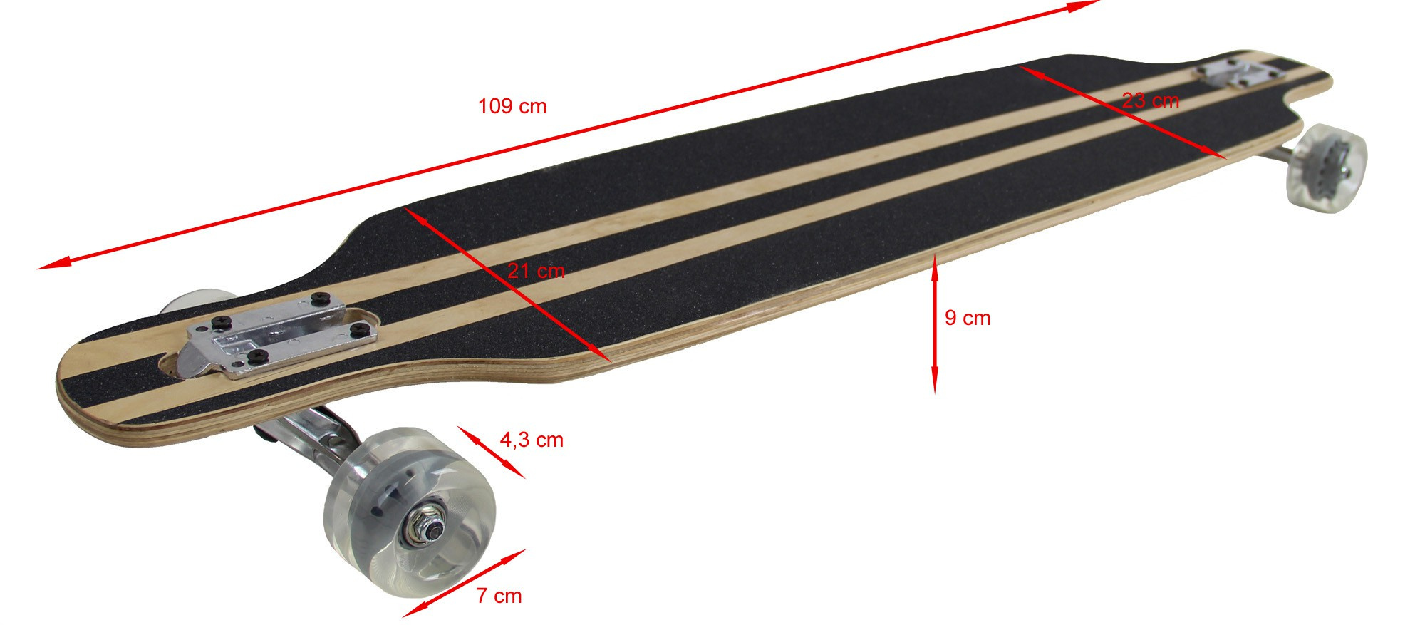 Odolná deska z 9 vrstev vyrobena z kanadského javoru společně s ložisky ABEC-7, zaručují výborné jízdní vlastnosti.