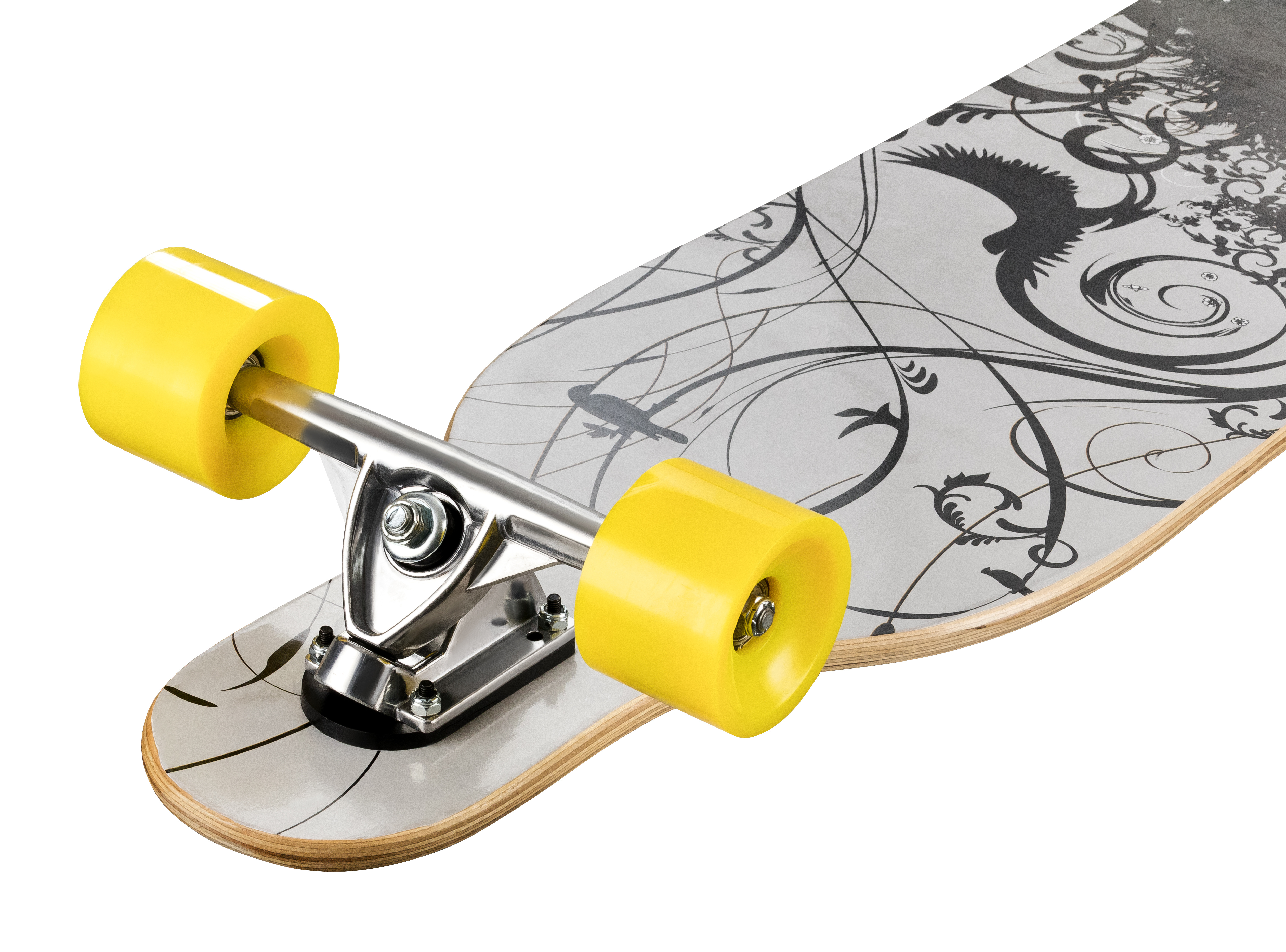 Odolná deska z 9 vrstev vyrobena z čínského javoru společně s ložisky ABEC-7, zaručují výborné jízdní vlastnosti.