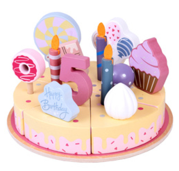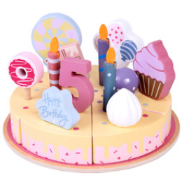 Drewniany Kolorowy Tort Urodzinowy do Krojenia – Zabawa w Urodziny!