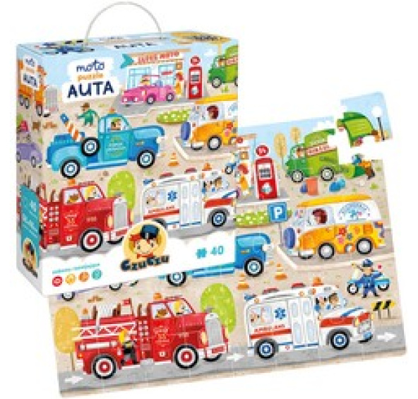Skládačky jsou všestranně rozvíjející hrou, která zdokonaluje manuální zručnost, procvičuje postřeh a rozšiřuje představivost. V dárkové krabici najdete velké 40dílné puzzle, které zobrazuje různá auta, nákladní auta a dopravní prostředky v akci - oblíbené předškoláky. Složení skládačky nestačí! Dětská fantazie umožní, aby se puzzle stalo výchozím bodem pro mnoho kreativních her.