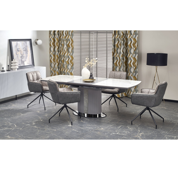 Popis produktu DANCAN stół rozkładany, biały marmur / popielaty / jasny popielaty / czarny