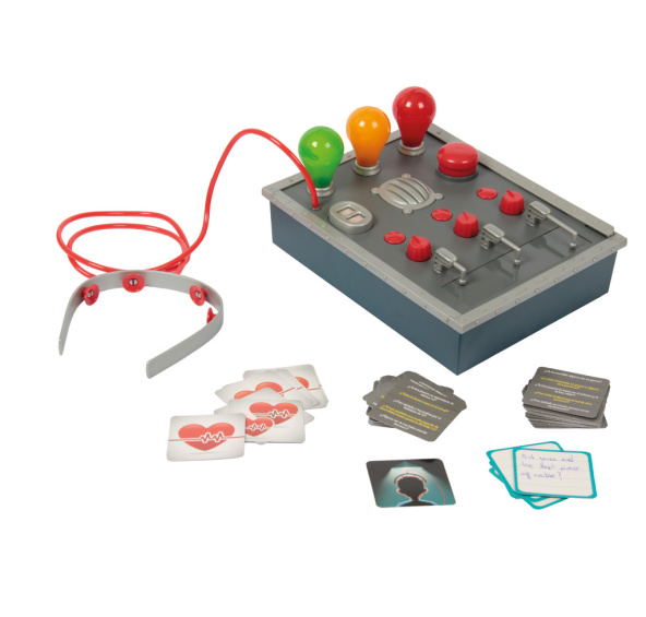 Myslíte si, že vaši přátelé mluví vždy pravdu? Ověřte si to s touto zábavnou hrou! Vyberte kartu, položte otázku a sledujte, co odhalí barevné žárovky detektoru pravdy. Jak hrát? Vyber kartu a zeptejte se hráče jakoukoliv otázku Detektor odhalí, zda mluví pravdu nebo lže Pokud je to lež, hráč ztratí život! Poslední hráč s největším počtem životních karet vyhrává!