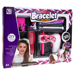 | - pletací strojek, - hřeben, - 6 x ozdoby do vlasů, - oddělovač vlasů, - 3 háčky na pletení, - 20 gumiček do vlasů. | |