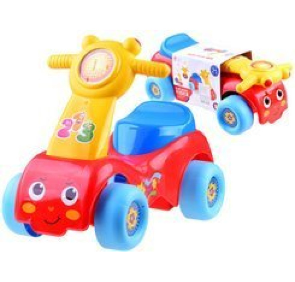 Vozidlo je vhodné pro děti od 18 měsíců. Vozítko s roztomilým smajlíkem umožní vašemu dítěti zábavnou jízdu po místnostech, uličkách. Koloběžka je vyrobena výhradně z vysoce kvalitního plastu a má sedátko, které umožňuje snadné nastupování a vystupování z vozidla. Velkou výhodou vozu jsou jeho malé rozměry, díky kterým je ideální pro použití doma nebo v bytě. Vozidlo pro nejmenší děti potěší každého fanouška čtyř kol. Na rukojeti koloběžky jsou červená tlačítka, která po stisknutí vydávají zvuk veselých melodií a klaksonu.