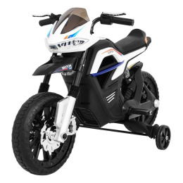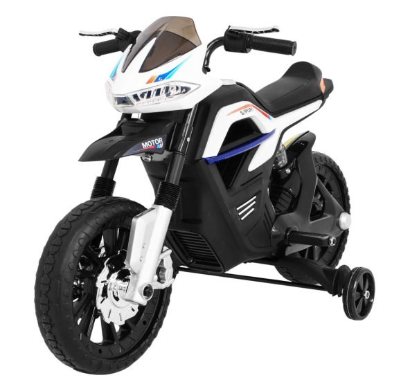 Popis produktu Dětská motorka Night Rider na baterie bílá + pomocná kolečka + MP3 USB + plyn v řídítkách