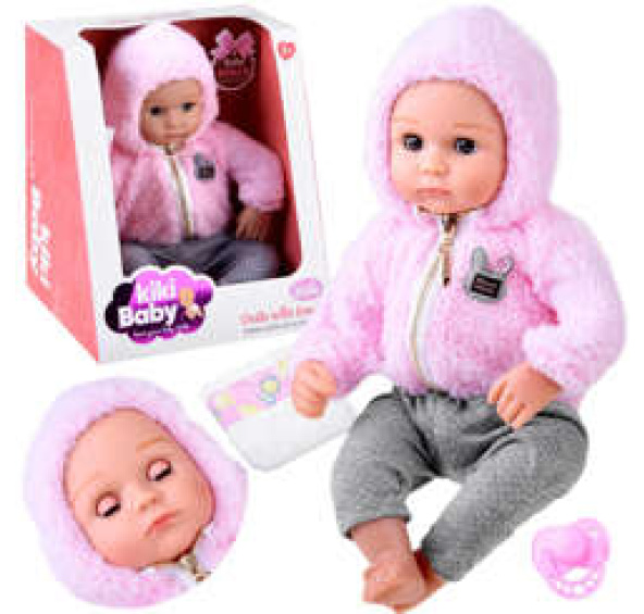 Panenka vypadá jako novorozeně. Má měkké látkové bříško a hlava, ruce a nohy jsou vyrobeny z tvrdé gumy. Když panenku položíte, zavřou se jí oči. Stejně jako skutečné dítě nemá na hlavě žádné vlasy, ale před chladem ji chrání teplá, na dotek příjemná růžová mikina. Celý outfit doplňují stylové šedé legíny s puntíky.