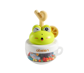 Naše houpací chrastítko Aga4Kids je navrženo ve tvaru roztomilého hrnečku s brčkem, které připomíná veselou žabičku. Tento design je nejen esteticky přitažlivý, ale také funkční.