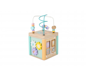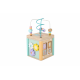 Pestrobarevná dřevěná interaktivní pomůcka v podobě edukační kostky, je kvalitní dřevěnou hračkou pro malé šikulky.