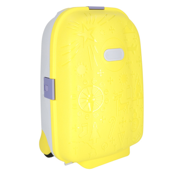 Vlastní kufr je ideální pro každého malého cestovatele připraveného na nová dobrodružství! Žlutá barva a zajímavé vzory upoutají pozornost vašeho dítěte a možná ho i povzbudí, aby si sbalilo svůj vlastní. Součástí sady jsou také samolepky na podepsání zavazadla.