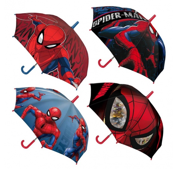 Dětský deštník Spiderman,čtyři různá provedení. Deštník otevíráme i zavíráme manuálně. Materiál polyester. Velikost deštníku 40×71 cm. Vyrobeno ve Španělsku.