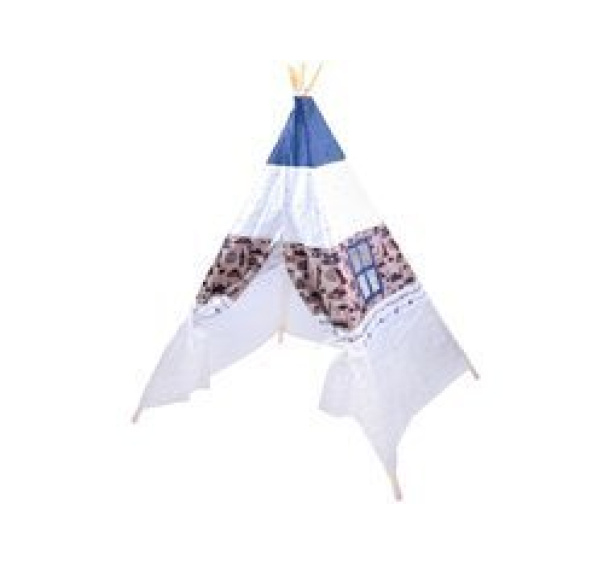 Stan ve stylu Teepee - se bude líbit snad každému dítěti. Děti mají rády tajemství a záhady a takový stan bude ideálním místem pro schovávání pokladů. Stan na hraní v pokoji nebo na zahradě je vyroben ze snadno omyvatelného materiálu a trubky jsou vyrobeny z plastu. Stan lze rozložit na jakémkoli rovném místě, je vhodný na hraní v pokoji s medvídky, panenkami, autíčky a skvěle se bude vyjímat i na zahradě. Stan je opatřen stahovacími páskami, které spojují jeho strany, takže je umožněn volný vstup a výstup. Velmi potřebné je také okénko, kterým se můžete podívat ven, zda se do stanu nevkrádá někdo nezvaný.