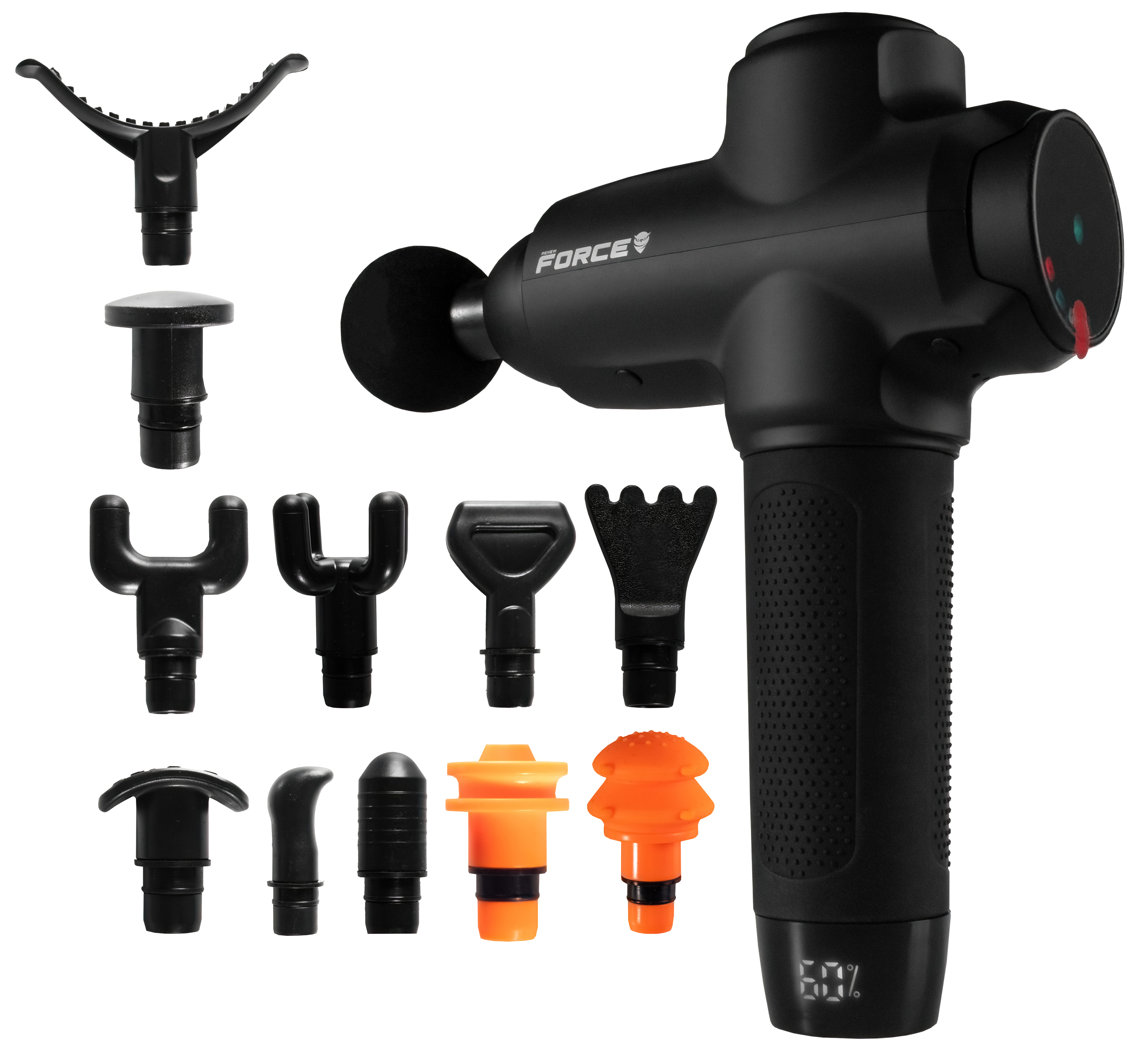 Pistole vám nabízí 10 rychlostních stupňů, mezi kterými lze přepínat dle aktuální potřeby a nabízí 12 vyměnitelných hlavic, které jsou určené pro různé svalové skupiny.