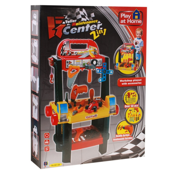 | | - sada 42 kusů nářadí pro malé kutily - Sada nářadí, - popisovaná sada je návrhem pro budoucí kutily, - jednotlivé prvky dílny lze snadno sestavit, - na praktický stojan můžeme zavěsit různé nářadí, - součástí sady je závodní auto pro vlastní sestavení, - hračka je napájena 2 bateriemi typu AA (2x1,5V) - nejsou součástí sady. |