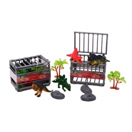 Popis produktu Dinosauři v kleci s příslušenstvímDinosauři v kleci s příslušenstvím – hrací sada obsahuje 4× dinosaura, 2× kameny,2× palmy a klec.
