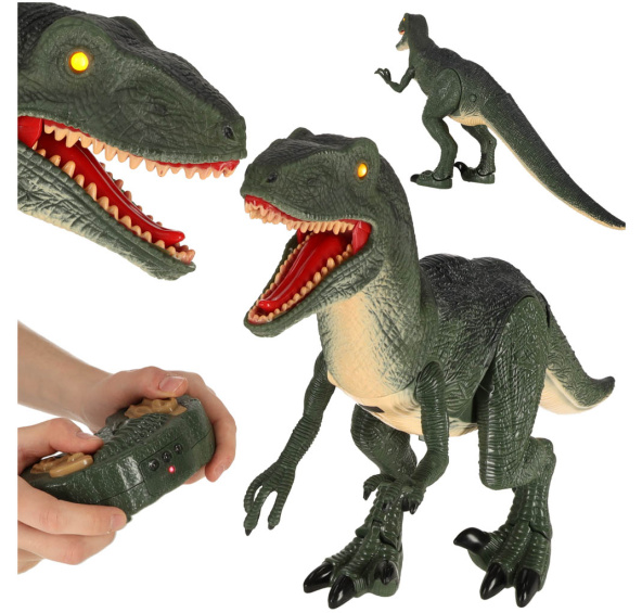Dálkově ovládaný dinosaurus Velociraptor se zvukovými a světelnými efekty - vydává realistický zvuk a jeho oči svítí. Má pohyblivé přední tlapky a hlavu.
