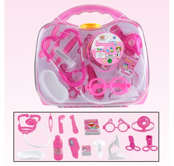 Doktorská sada pro budoucí lékaře. Sada je v kufříku a je vhodná pro děti od 3 let. V balení najdeš 15 ks pro každého doktora – fonendoskop, mikroskop, léky…