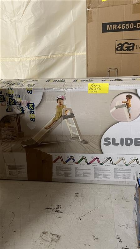 DŮLEŽITÁ BEZPEČNOSTNÍ UPOZORNĚNÍ: při skládání skluzavky je velmi důležité řídit se přiloženým návodem k použití. Nezapomínejte na zabezpečovací pás a šrouby, které jsou také součástí balení.