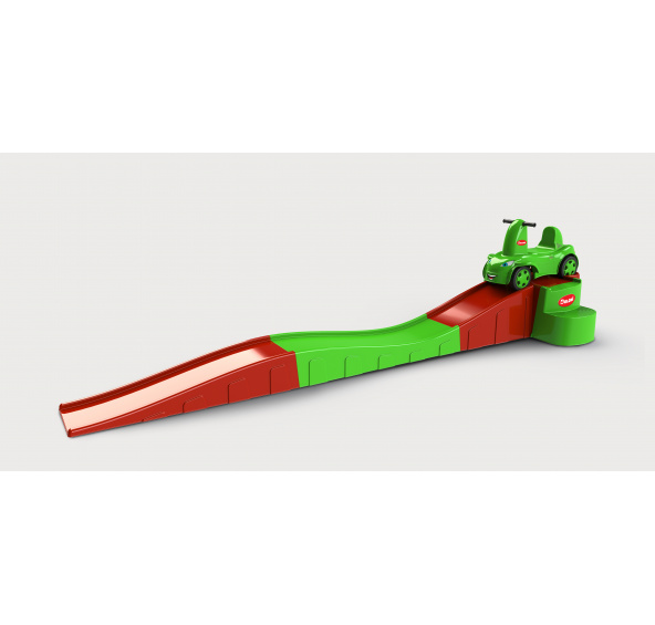 V horní části autodráhy jsou drážky, které drží odrážedlo na místě, když si dítě sedá. Dráhu může dítě využít i ke hře s autíčky (automobilové závody).