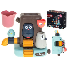 Modrý pták hlídá kohoutek, aby voda nepřišla nazmar. Otáčejí ptákem, zapínají a vypínají kohoutek. Tmavomodrá sova hlídá mlýn a šedý pták má malé otvory, kterými vytéká voda jako při sprchování.