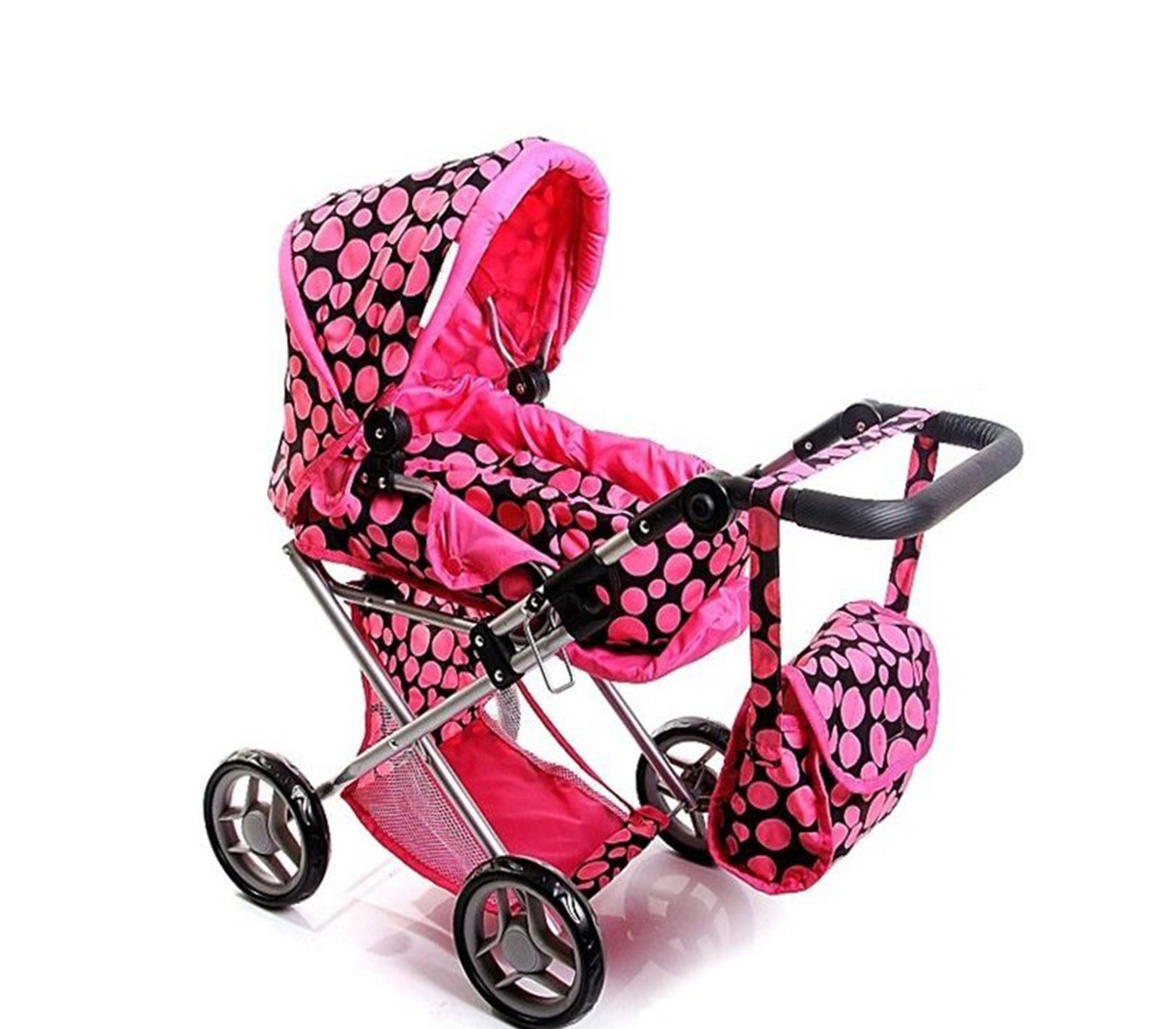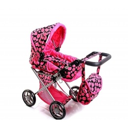 Kočárek je vyveden v pestrých barvách, doplněn hezkým vzorem, v takovém kočárku se panenky budou vozit jedna radost.