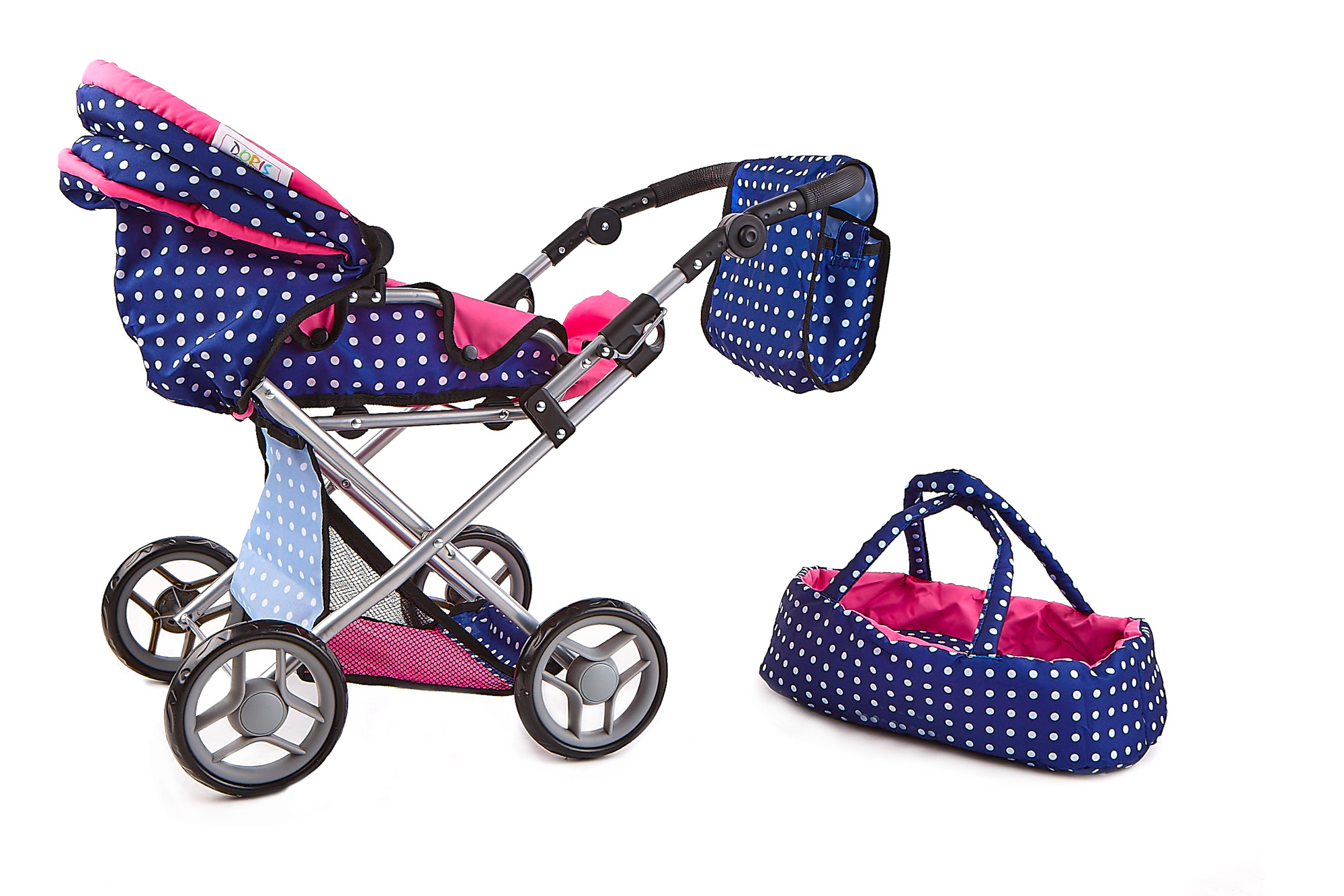 Specifikace kočárku pro panenky Doris 9346/L Blue Pink.