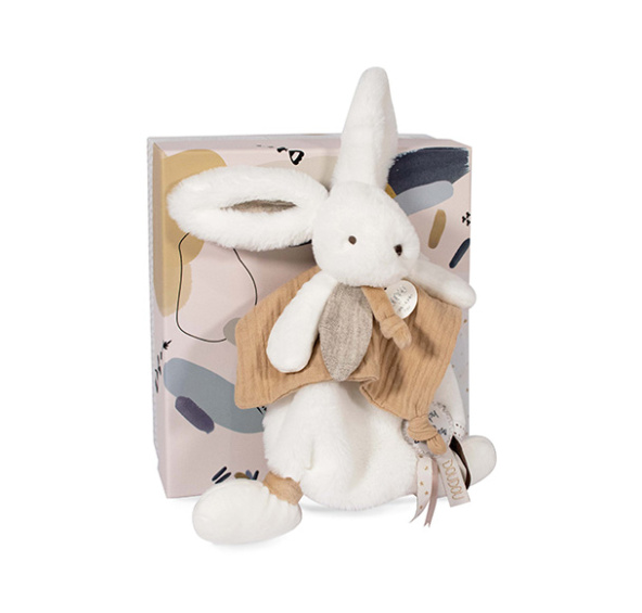 Měkký králíček se rychle stane oblíbeným společníkem Vašeho dítěte. Krásný, stylový s bambulkou v béžové barvě, zdobený efektními, dovedně sladěnými tkanými stuhami. Je posazený do nádherné dárkové krabičky s grafikou evokující modernost i luxus. Tato plyšová hračka je také ideální jako dárek. Údržba: Perte v lázni na 30°. Přirozené nebo nízkoteplotní sušení. Hlavní vlastnosti: měkký plyš, prémiový materiálv souladu s evropskými normami CEkamarád, polštářek, nebo také výzdoba dětského pokojevhodné od narození