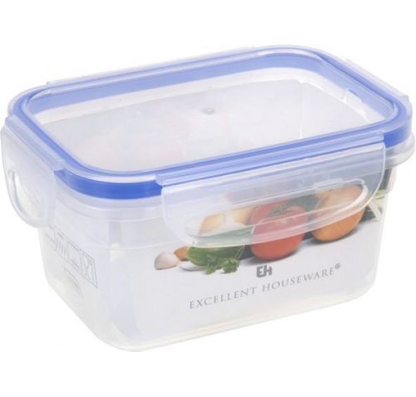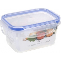 Popis produktu Dóza plastová s klip víčkem 0,43 l - EXCELLENT- materiál: plast- rozměry: 13 x 10 x 7 cm- objem: 0,43 l- barva: transparentní/modrá- klip víčko
