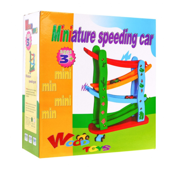 Popis produktu Dřevěná autodráha pro děti 3+ Barevná čtyřpatrová skluzavka