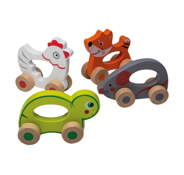 Popis produktu Dřevěná jezdící zvířátka 4 druhyDřevěné zvířátko s úchytem – myška, tygr, slepička a brouček. Vyrobeno z kvalitního tvrdého dřeva.