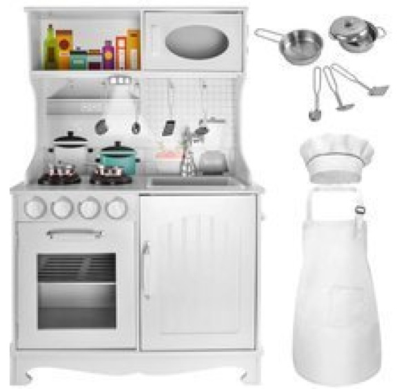 • DOPLŇKY DO KUCHYNĚ PŘIDÁVÁME ZDARMA - přidáme do sady zcela zdarma zástěra, kuchařská čepice, 4 lžíce, hrnec, pánev a poklička . Kuchařův outfit je vyroben z měkké látky, což rozhodně zvyšuje komfort jeho používání; pěkný střih, estetické lemy, bílá barva přispívají k vizuální atraktivitě produktu. Dřez v troubě je vyjímatelný, dítě / rodič jej může naplnit vodou a po hře umýt nádobí.