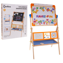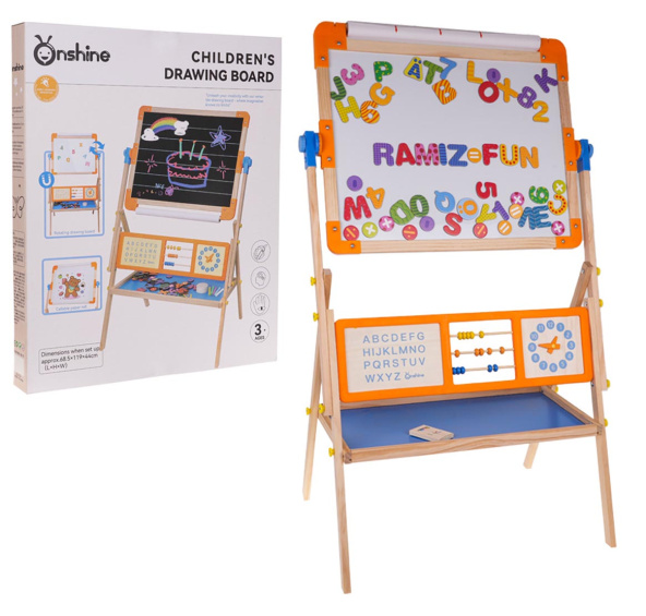 | Velká dřevěná sada skládající se z křídové tabule, magnetické tabule, počítadla, hodin, magnetů a malířského papíru je určena pro děti od 3 let. Tabule jsou umístěny oboustranně na dřevěné pevné konstrukci. Bílá tabule slouží k psaní fixem a připevňování magnetů. Na černé straně lze psát nebo malovat křídou. Nad magnetickou tabulí se nachází také role malířského papíru. Pod tabulkami je umístěno počítadlo, hodiny s pohyblivými ručičkami a abeceda, a ještě níže se nachází polička, která pojme všechny malířské doplňky přiložené k sadě. Hra s tabulí pozitivně ovlivňuje manuální dovednosti, koncentraci a představivost.
