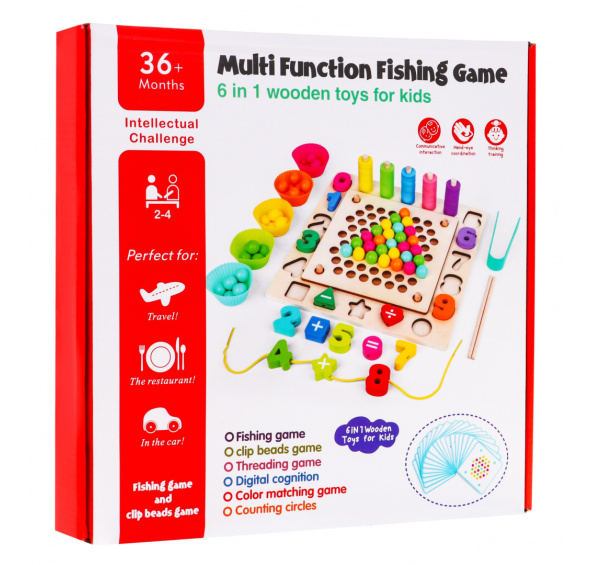 Dítě má za úkol chytit rybu nebo jiného mořského živočicha pomocí rybářského prutu s magnetem, čímž trénuje koordinaci, správný úchop a trpělivost.