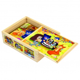 Zasouvací dřevěná krabička plná dřevěných kostek s obrázky. Sestavte veselé obrázky s paní Krtečkovou a jejími kamarády. Oblíbená tradiční hračka, kterou děti milují. Krabička obsahuje 12 ks kostiček.