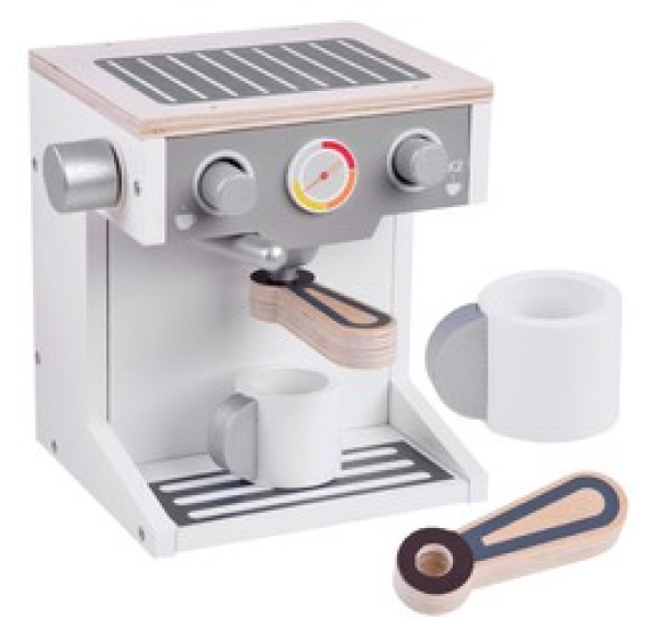 Kávovar + šálek je sada, která nesmí chybět v žádné kuchyni, kanceláři ani baristickém koutku.Hračka je celá vyrobena ze dřeva v elegantní barvě a hodí se do každého dětského pokoje.