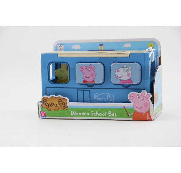 Dřevěný školní autobus Prasátko Peppa -hrací školní autobus, ve kterém najdeš dřevěný nábytek a 1 figurku. Otevři autobus a zahraj si zábavné scénky, ze střechy autobusu můžeš protláčet dolu dřevěné kostky podle jejich tvarů.