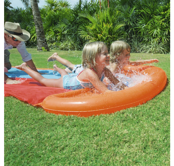 | - připojení postřikovače zahradní hadice, - dvě dráhy, - nafukovací povrch s přídavnými postřikovači a vodní komorou, - robustní snadno použitelné ventily, | |