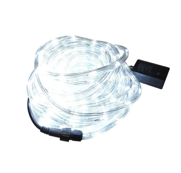 Světelný had 10m 240 LED, Polovodičový zdroj světla je velmi odolný a nevydává teplo. Spotřeba energie v rozmezí 10 % běžné žárovky při zachování stejné intenzity světelného toku. SPECIFIKACE: - barva svícení - studená bílá - 240 LED diod (24 diody na každý metr kabelu) - délka: 10 m - průměr hadice: cca. 9mm - 8 funkční programátor - sada označená třídou krytí IP44 - pro venkovní použití - napájení 230V 50Hz - doba svícení: 30000h Počet ks. v kartonu: 10