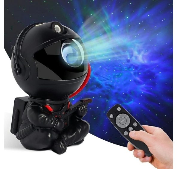 Fantastický projektor hvězd ve tvaru astronauta s kytarou v rukou, který může snadno nahradit noční lampičku. Vestavěný laser umožňuje projekci hvězd nebo galaxií v různých režimech. Hlava otáčející se o 360 stupňů umožňuje promítat projekci v široké rovině a na velkou vzdálenost. Díky pilotu je možné regulovat jas LED diod a rychlost jejich zhasínání. Dokonalý nápad na dárek pro dítě, stejně jako pro dospělého, který touží zaklít kousek vesmíru ve svém domově. Specifikace: Materiál: ABS+PC+PVC Rozměry produktu: 8,6x7,6x12,5 cm Materiál stínidla: PVC Dálkový ovladač (2xAAA, nejsou součástí balení) Projektor mlhoviny RGB Laserový projektor s nastavitelným jasem a rychlostí zobrazení Výkon: 5 W Napájecí kabel USB
