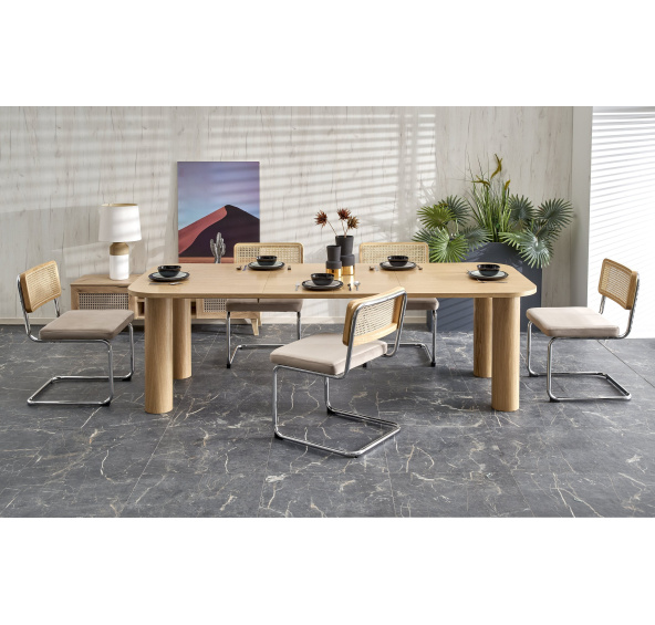 Popis produktu ELEFANTE PROSTOKĄT stół rozkładany 160-240/100 dąb naturalny (2p=1szt)wymiary: 160-240/100/77 cm, stół rozkładany, materiał: MDF + okleina naturalna - dębowa, kolor: dąb naturalny