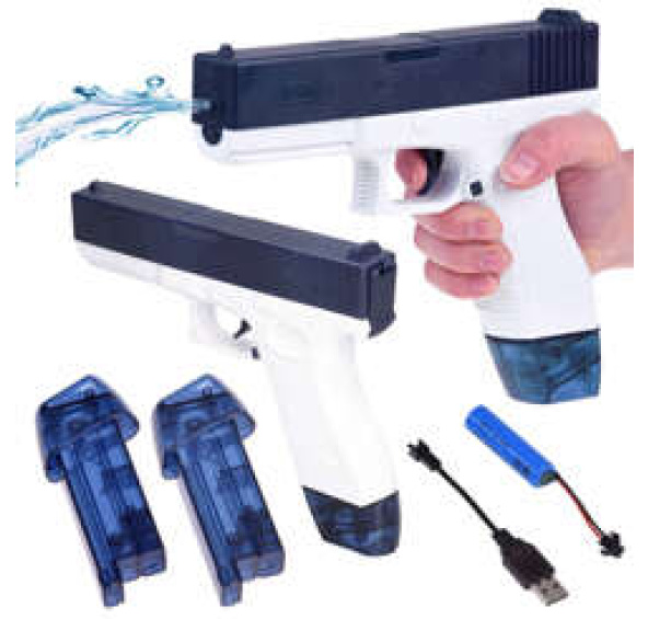 Díky elektrickému napájení je vodní pistole během okamžiku připravena k použití a můžete si při zábavě užívat nepřetržitý proud vody.