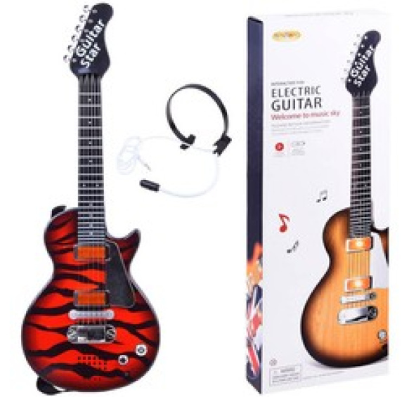 Elektrická kytara s mikrofonem na hlavě je pro každého malého hudebníka. Tvrdá rocková kytara má před nahranou melodii a je podsvícená, což malému kytaristovi dodává ještě větší drápek. Mikrofon se zapojuje do kytary a je umístěn na hlavě, takže se malý kytarista může snadno vžít do rytmu a role kytaristy. Krk kytary je aktivní, jakmile se dítě dotkne prsty strun, ozve se příjemný zvuk kytary. Silná hudební kytara s hlasitým zvukem může být začátkem hudebního dobrodružství malého kytaristy.