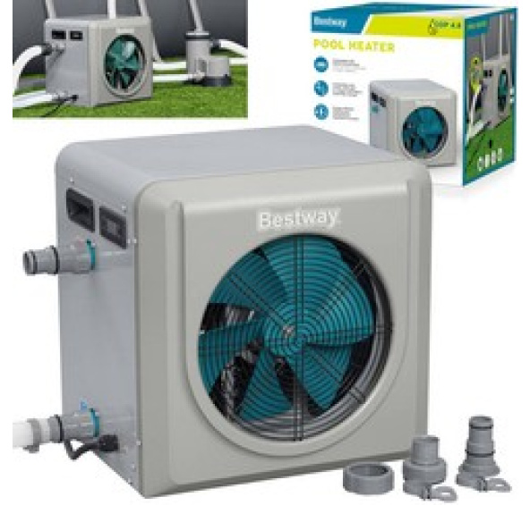 Elektrický ohřívač bazénu má dva hadicové vývody, z nichž jeden je připojen k filtračnímu čerpadlu a druhý k nadzemnímu bazénu.ohřívač Flowclear™ 4,4 kW představuje energeticky účinný způsob regulace teploty. Má antikorozní titanový výměník tepla, který je vyroben z vysoce kvalitních materiálů a pro větší bezpečnost je vodotěsný podle normy IPX4.