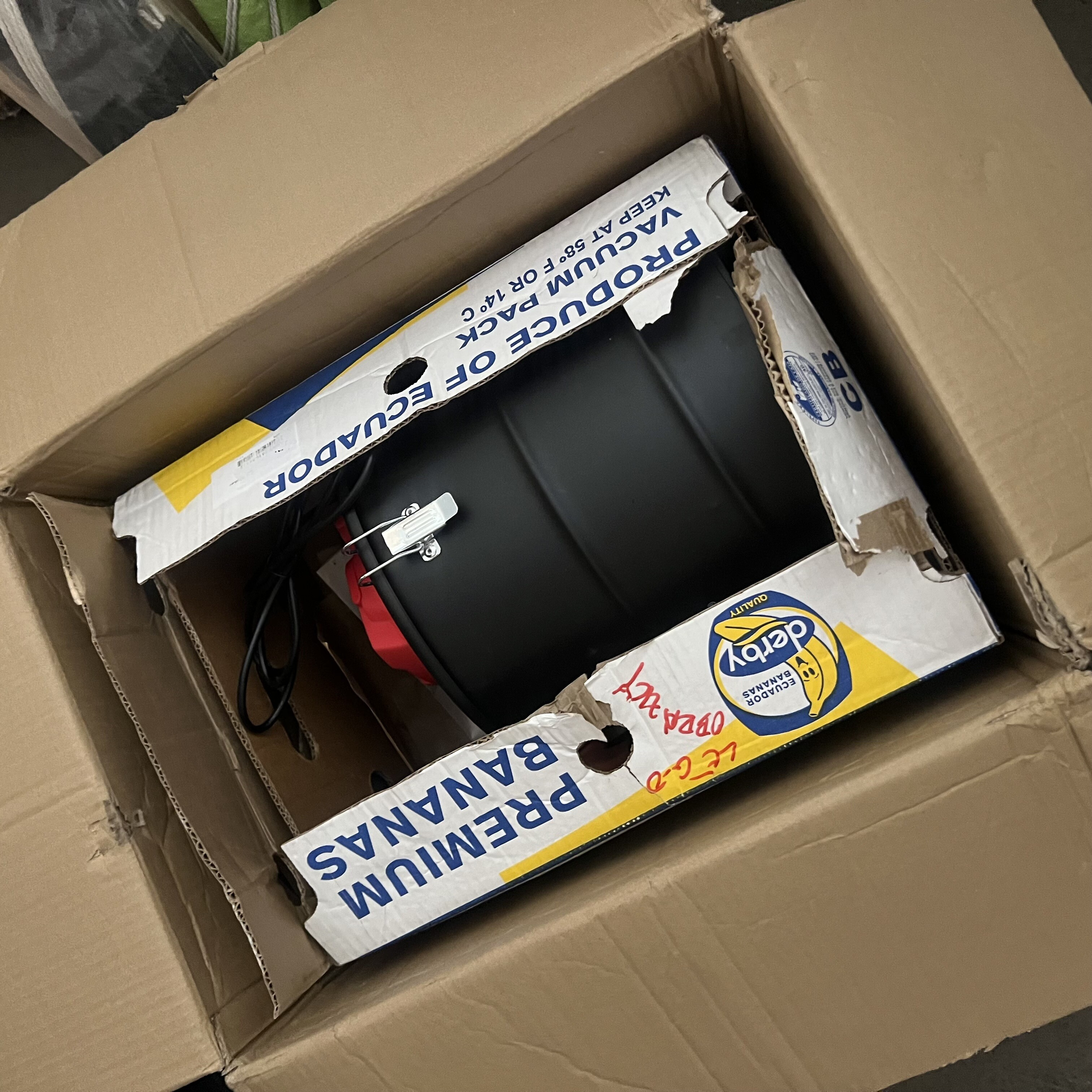 Vysavač má malou prohlubeninu, je trochu špinavý a nemá základnu s kolečky.