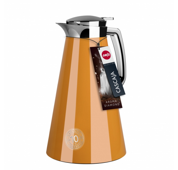 Konvice Cascaja s vynikajícími termo vlastnostmi a 100% nepropustností v zajímavé oranžové barvě. Termoska o objemu jednoho litru má pohodlné ovládání, které zvládnete jen jednou rukou. Objem: 1 litr. Teplý nápoj udrží až 12 hodin a studený 24 hodin. Unikátní vložka z ručně foukaného skla. Materiál: vysoce odolný ABS plast, nerez ocel, sklo. Pohodlné ovládání jednou rukou. Nadčasový design. 100% těsnost. Značka EMSA