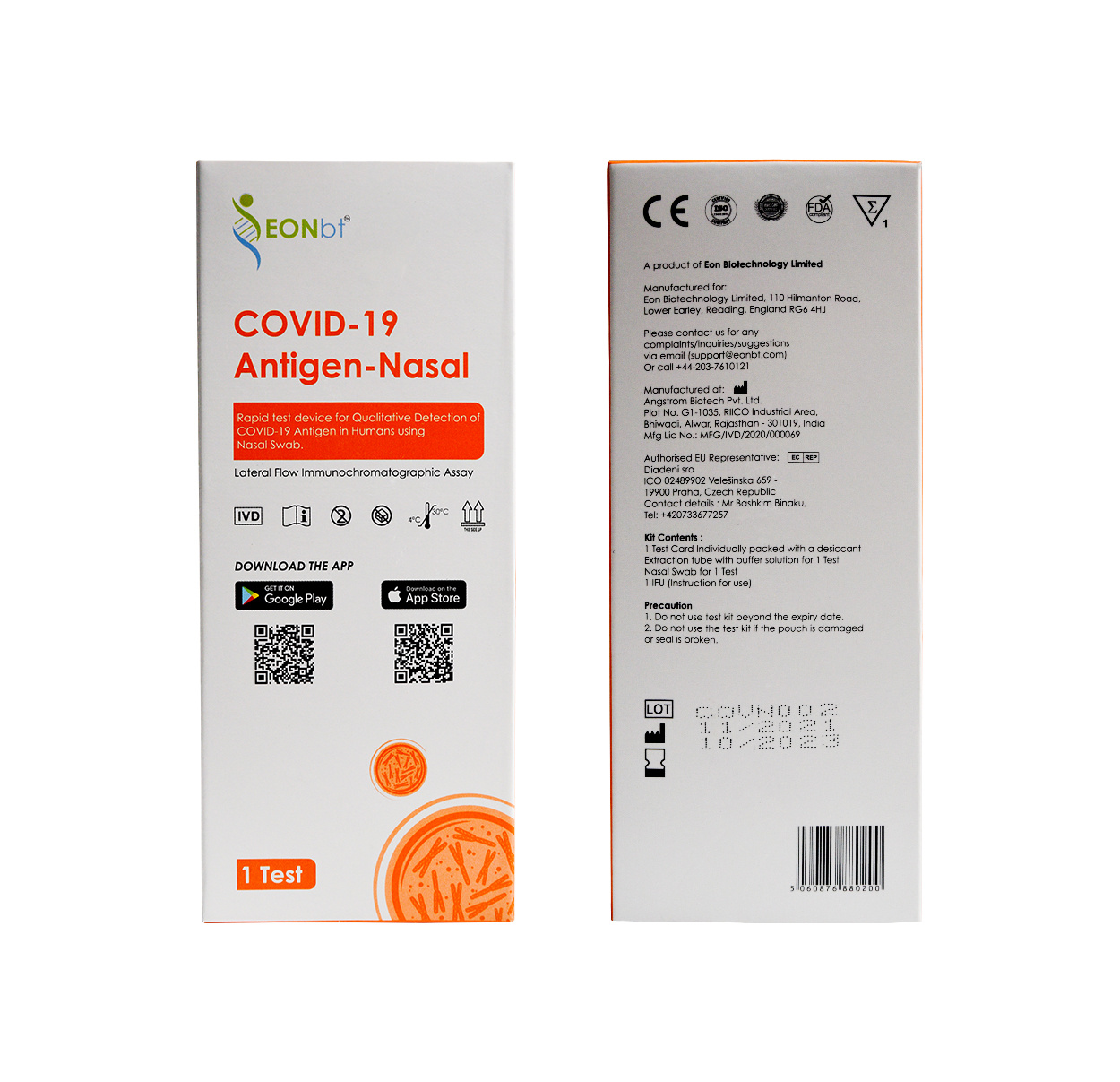 COVID-19 Antigen Nasal rychlý antigenní test na přítomnost koronaviru (SARS-CoV-2) pro výtěr z nosu, z krku a nosohltanu.
